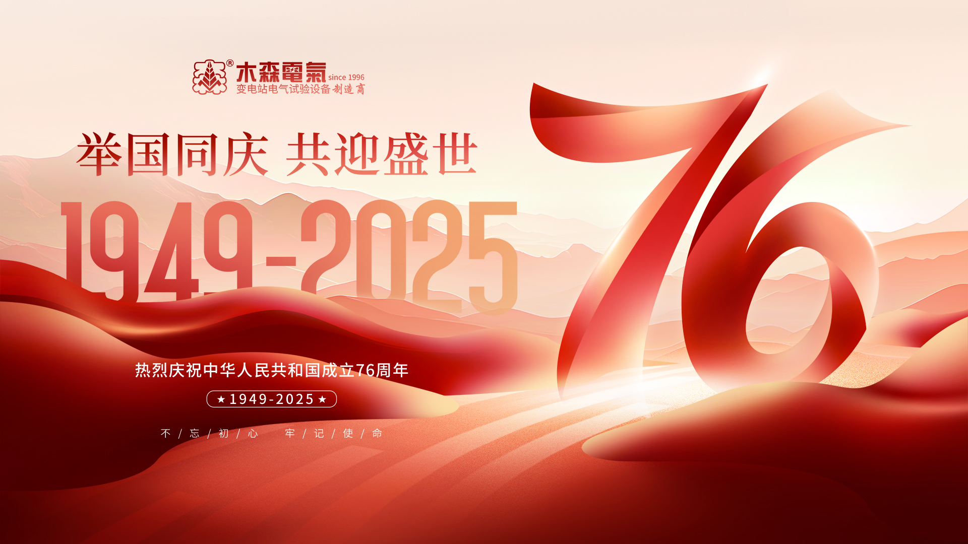 ??七十六載風(fēng)華正茂,九州方圓燈火輝煌。?? 值此中華人民共和國成立76周年國慶佳節(jié)來臨之際,武漢市木森電氣有限公司攜全體員工,向長期以來信賴與支持我司發(fā)展的各級(jí)電力單位、行業(yè)伙伴與廣大客戶,致以最崇高的敬意和最誠摯的節(jié)日祝福!